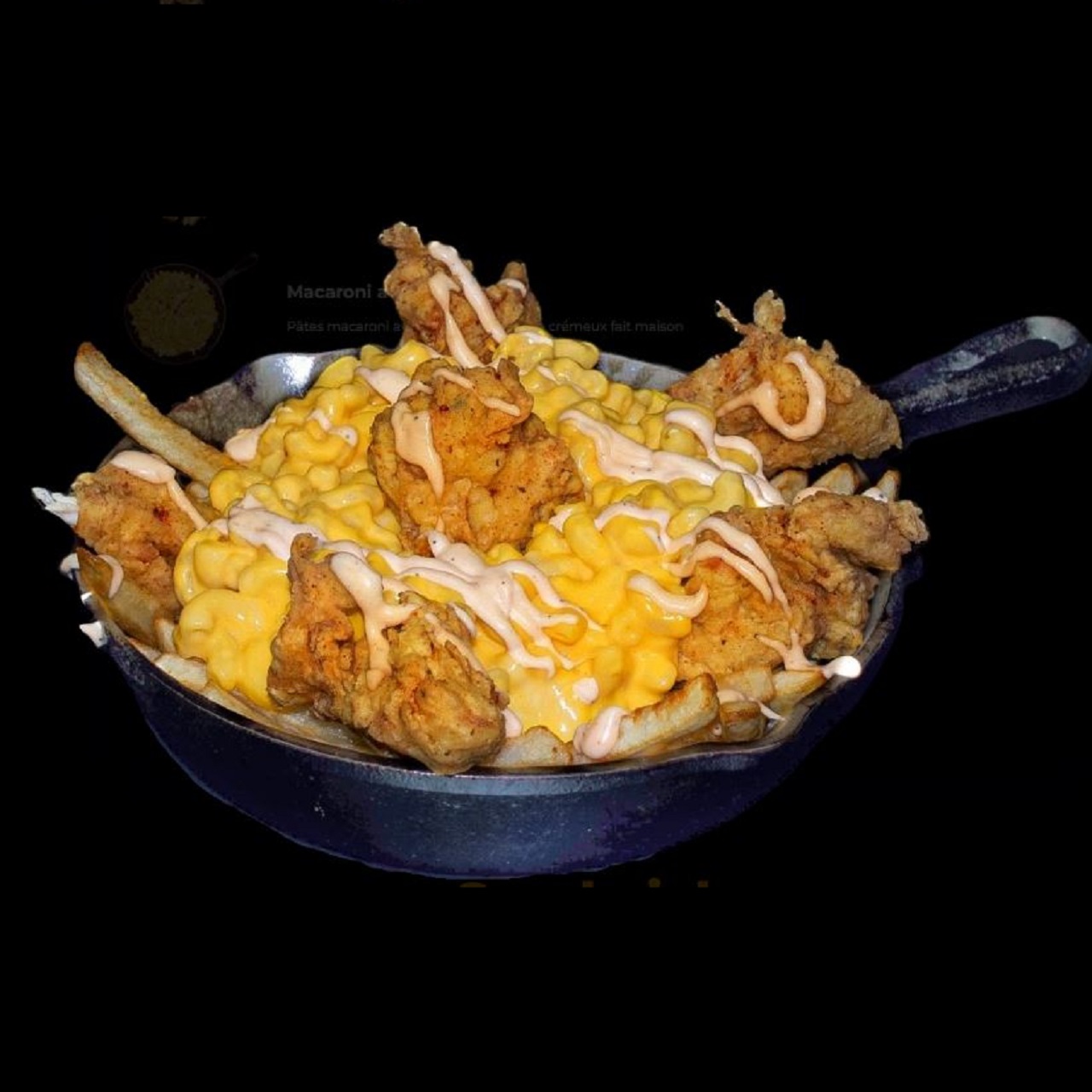 Think mac & cheese meets fries, wings or beef-loaded comfort on a platter.