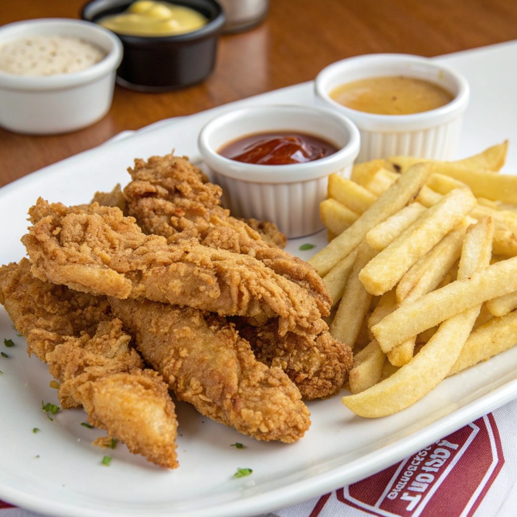 Satisfy your cravings with our Crispy Chick Strips! Tender chicken breast, fried to golden perfection for the ultimate crunch, served with a generous portion of golden fries. Choose from 3 or 6 pieces and pair them with your favorite dipping sauce for a deliciously customizable experience. A classic comfort food that’s crispy, juicy, and downright irresistible!